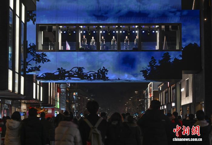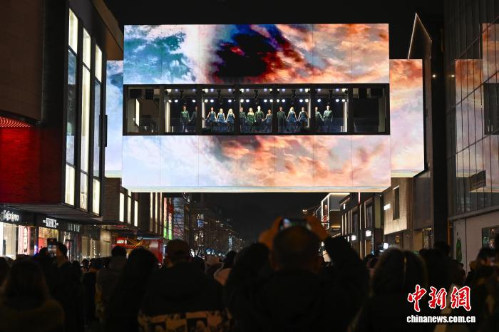 1月5日,爱我兰邦宝级舞剧《年夜河之舞》正在浙江杭州西湖四周的西子廊桥演出,吸收游人安身旁观。中新社记者 王刚刚 摄